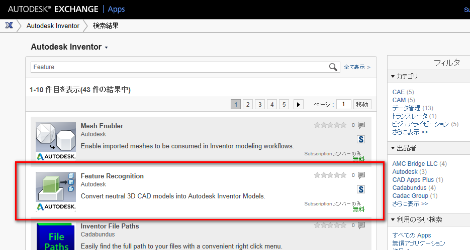 多くのソフトウェアがありますのでFeature Recognitionを検索します。